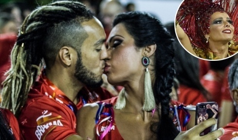 Belo não assistiu ao desfile de Gracyanne em São Paulo porque disse que estava com Síndrome do Pânico, mas na Sapucaí ele foi e deu um beijão na mulher, enquanto sua ex, Viviane Araújo, desfilava pela Salgueiro.