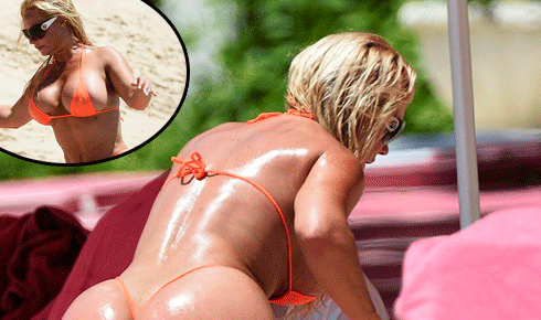 Modelo Coco Austin usa biquíni ousado em praia de Barbados