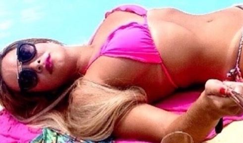 Com pau de selfie, Geisy Arruda exibe bronzeado e marquinha