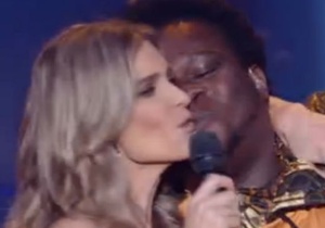 Fernanda Lima e vocalista de banda dão selinho sem querer