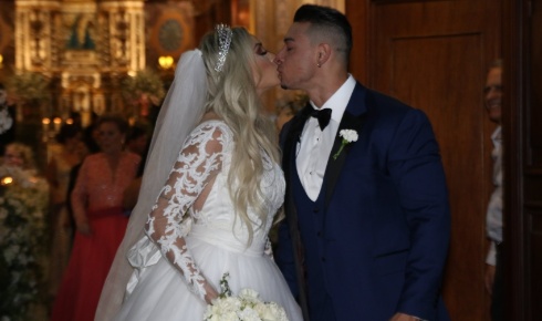 Juju Salimeni e Felipe Franco celebram união em igreja; veja