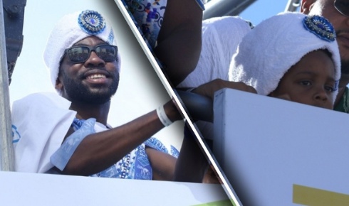 Lázaro Ramos leva o filho para desfile dos 'Filhos de Gandhy'