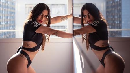 Cleo brinca com reflexo no espelho em clique sensual: 'Duas está bom, né?'