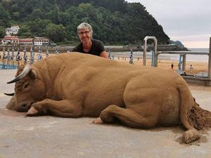 Esculturas de animais feitas de areia em tamanho real