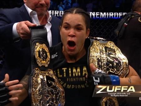 Amanda Nunes celebra vitória no UFC com esposa e filha